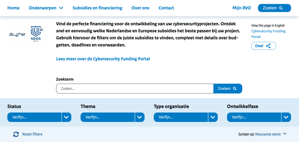 Folkwin: ‘De reacties zijn positief. Veel ondernemers en organisaties die we sinds de lancering op 1 oktober hebben gesproken, vinden dat het portal een helder overzicht biedt van subsidiemogelijkheden voor cybersecurity-innovaties. Op de One Conference, waar we het portal live demonstreerden, waren de reacties eveneens enthousiast. Zelfs een start-up gaf aan graag te willen meewerken aan onze promotiecampagne. Zoals hij zei: “Het zoeken naar financiering is een kunst, zeker als je het nog nooit eerder hebt gedaan. Inzicht in de voorwaarden helpt enorm om direct te bepalen of een subsidie de moeite waard is.” Door deze subsidies overzichtelijk aan te bieden, besparen we ondernemers kostbare tijd.’